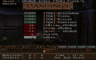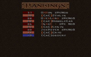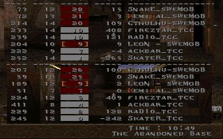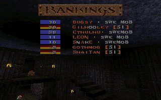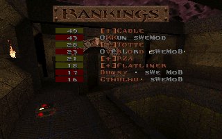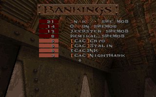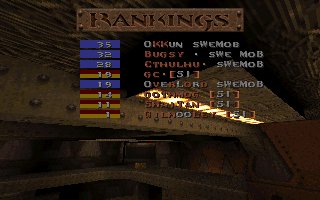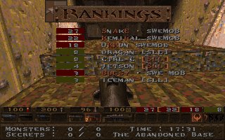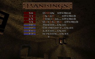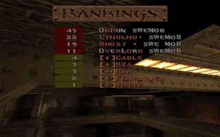 This was our second fight against SI on the same evening, this time it was a SQL match so we included 2 lpbs in our team. But this time the server realy sucked and our LPBs did (for the first time ever) have the chance to feel how iceskating works in Quake ;) This time SI gave us a harder fight especially on their choice e1m2, were they fought bravelly. Unfortunatelly SI decided to leave SQL latar on, so this match was never included in the SQL statistics :( |