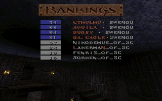 Our third match against the crusaders, this time they chosed a map that almost nobody has played on before (except themselfs) so we trained some on this map. Unfurtunatally it was to little, and after the first 10 minutes of struggle, crusaders got total control over this map and we lost a lot of frags on this map. Second map was an uphill struggle to get back all frags we lost on the first one. After a slow start, da Mob started to frag a lot and gain most of crusaders advantage, but not all and the crusaders won with 4 measly frags. We have added 33 frags on our score and 39 frags on crusaders score due to disconnects in the second half. |