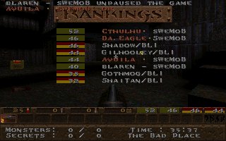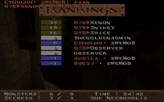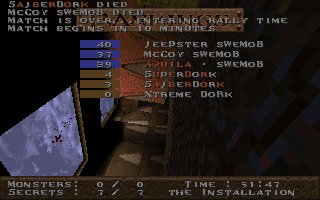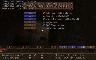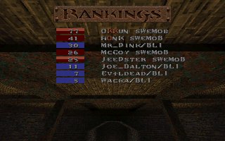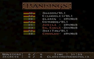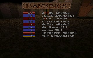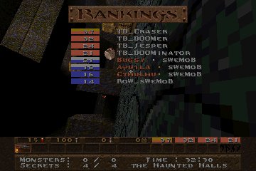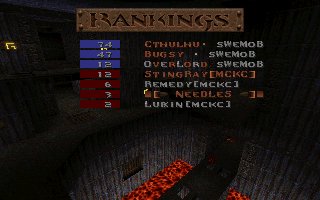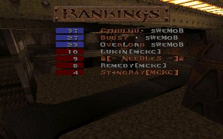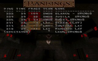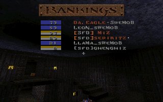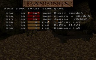 LAV challenged us, but it seems that they never played QW before and not map dm2, so the outcome was spectacular (from our viewpoint) with our biggest win ever and the biggest fragratio in a dmmatch (301- -22 on dm2). All newbie clans should take this as a warning, if you are going to meet a big clan you must learn all the normal dmmaps that your opponent could choose and if you havn't played QW before learn it first before the game. It was sad to see how bad prepared they were. |
