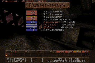 Our first match in the second seson of SQL, this time SQL is divided in one POTS division and one OPEN division, and this wasour first match in POTS division. Unfortunaly TB got their revenge after 2 POTS defeats against us before, after a good teama good team effort they won. This was the debute of our new member RoW, who didn't had an easy task, this beeing is first important and this beeing a regular (lag) quake match, and he is a QW specialist so its was hard for him but we expect great things from him in the future in QW matches. |