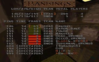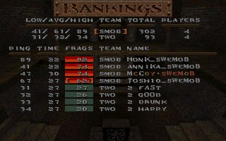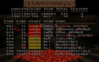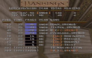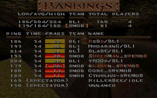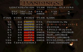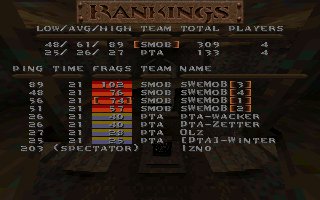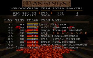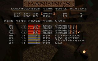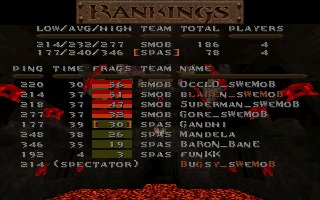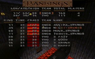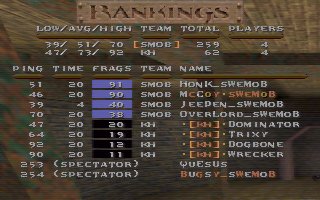 Our lpbs got their sweet revenge for the suprise defeat against PTA a couple of weeks ago, this time we had a stronger team and they had, sorry to say, a weaker team then last time. PTA should have all credits for this match, they missed one of their teammates, but they didnt postponed the game, instead they put in a total quake newbie (at least they said that he didnt have played any quake before) so we could play this game. I hope that we can give them a rematch when both of us have our strongest teams. The server went down in the first half so this half was split in two periods. Our lpbs didnt use their name during this fight because they didnt want it to be a frag contest instead they consentrated on the teamplay and they did a great job at this. The mobsters that played this game was, HonK, KemiKal, JeePster and McCoy. |