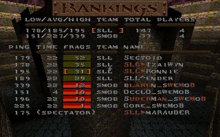 Hmm... either our mobsters had a blackout or SLL have suddenly become a quake powerhouse. We were beaten quite a lot and i dont know why, but none of the SLL players in this match has ever played against us before (in games that we have won quite easily). I have a feeling that they have done some recruiting lately. |